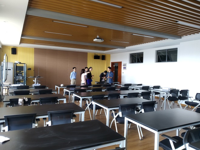 朱义华副院长首先对关院长一行表示了热烈的欢迎,随后对我院、我校的情况进行了简要介绍,内容涵盖学校历史、学科状况、师资概况与我院本科、研究生培养现状、课程设置、升学就业、教师发展与科研形势等相关方面。关熔珍副院长在发言中首先对我院的接待表示了感谢,而后双方就教师发展、研究生培养与管理、人才引进、科研提升以及学位点申报等方面进行了互动和经验分享。关院长对我院的研究生论文质量与培养方式极为赞许,同时对我院发展过程中遇到的困难与瓶颈不时分享她们的经验。最后,在学院实验室主任王旭老师的带领下,关院长一行还参观了我院最新引进的多模态实验室和同传实验室,并视察了学生在语言实验室的自主学习的情况,对我院的先进设备与教学科研条件留下了深刻的印象。