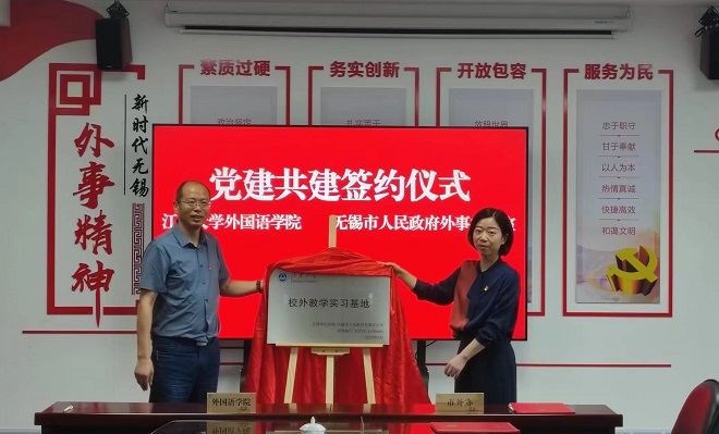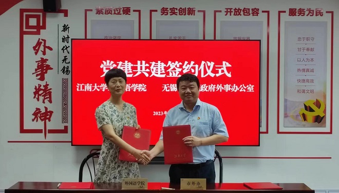 双方签订《江南大学开云手机登录入口与无锡市外办共建协议》《江南大学开云手机登录入口党委与无锡市外办党委共建协议》《开云手机登录入口英语系支部、研究生支部—市外办翻译支部共建协议》。