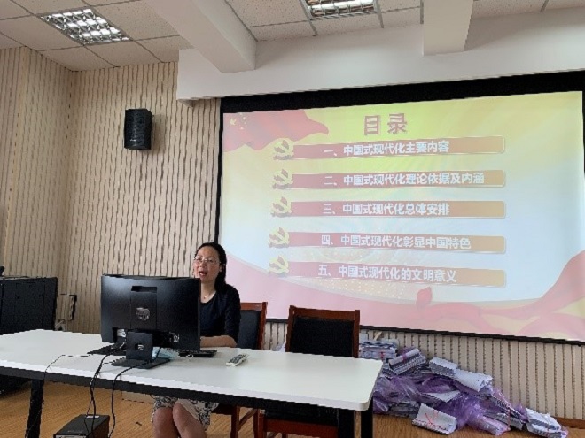 为深入学习贯彻习近平新时代中国特色社会主义思想,推进主题教育走深、走实、走心,引导党员深刻领会中国式现代化的内涵和意义,深刻领悟、贯彻党的二十大精神,2023年6月7日下午,开云手机登录入口副院长谢竞贤为拓展部党支部全体党员讲授了题为《以中国式现代化全面推进中华民族伟大复兴》的主题党课。