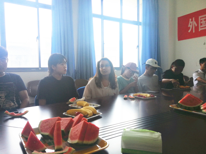学院为大家准备了水果茶点,毕业生们从学业、生活、就业等方面交流了自己在江南大学的经历感受和问题困难等,现场氛围和乐融融。两位领导认真了解了同学们的学习生活情况和毕业就业情况,尤其是在就业信息获取、求职能力提升以及学业方面的困惑,并表示将尽力为少数民族学生在江南更好地学习、生活和就业提供指导和帮助。