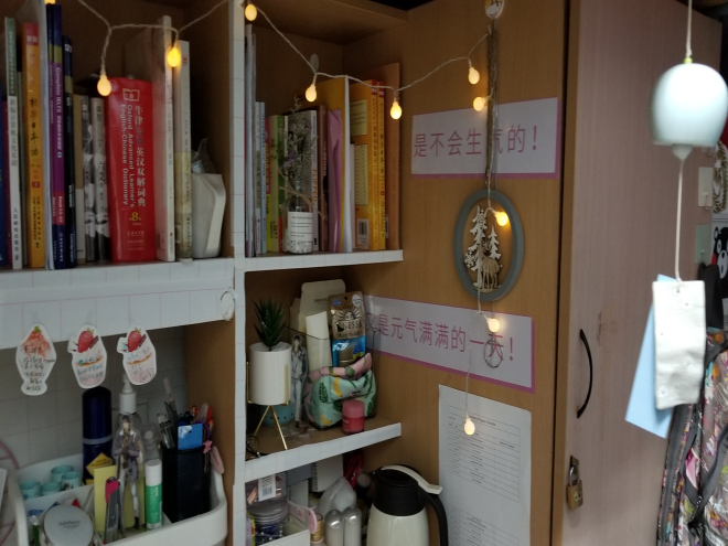 第二项活动为“我寝我秀——特色寝室设计”。新生们以寝室为单位,每个寝室通过讨论设计各自的寝室名、寝室宣言或口号、寝室公约等,并据此进行寝室logo设计,并在A4纸上进行体现,贴于各寝的醒目位置。各寝室也可根据寝室名进行相应风格的装扮,最后每个班评出1个特色寝室“最佳设计奖”。该活动让每个寝室成员在活动过程中增进感情和宿舍凝聚力,加强动手协作的能力。