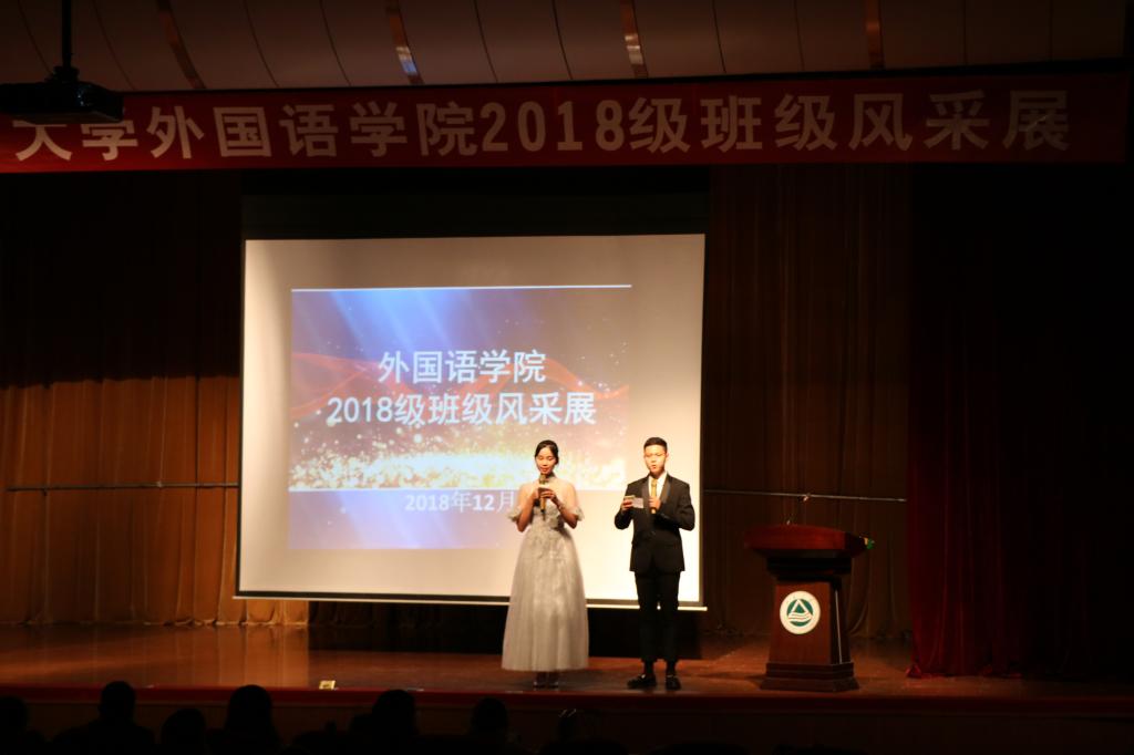2018年12月13日晚6点,开云手机登录入口在我校南活报告厅成功举办了2018级班级风采展活动。出席本次活动的老师和嘉宾有学院党委副书记、副院长刘伯贤,分团委书记杨艳,辅导员张圆、黄颖,英语1802班主任曹乐,院学生会主席符瑰,院艺术团部长蔡艳娟以及18级各班副班主任。18级全体新生及部分16、17级300多名同学参加了本次活动。