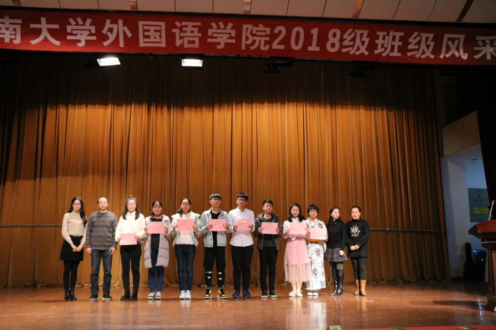 最后,主持人公布了此次风采展的获奖班级,至此,18级班级风采展也就圆满落幕了。本次活动对于18级新生来说是一次历练,也是一次成长,有利于提高新生班级凝聚力和班级归属感,也提供了新生展示个性与创意、才华与梦想的舞台,展现了新生的青春朝气与活力。相信同学们在未来丰富多彩的大学生活中,可以凭借着专业知识与才华,梦想与勇气一路向前,也会凭借着各个班级团结向上、奋力拼搏的精神在江大外院书写更美的青春篇章。