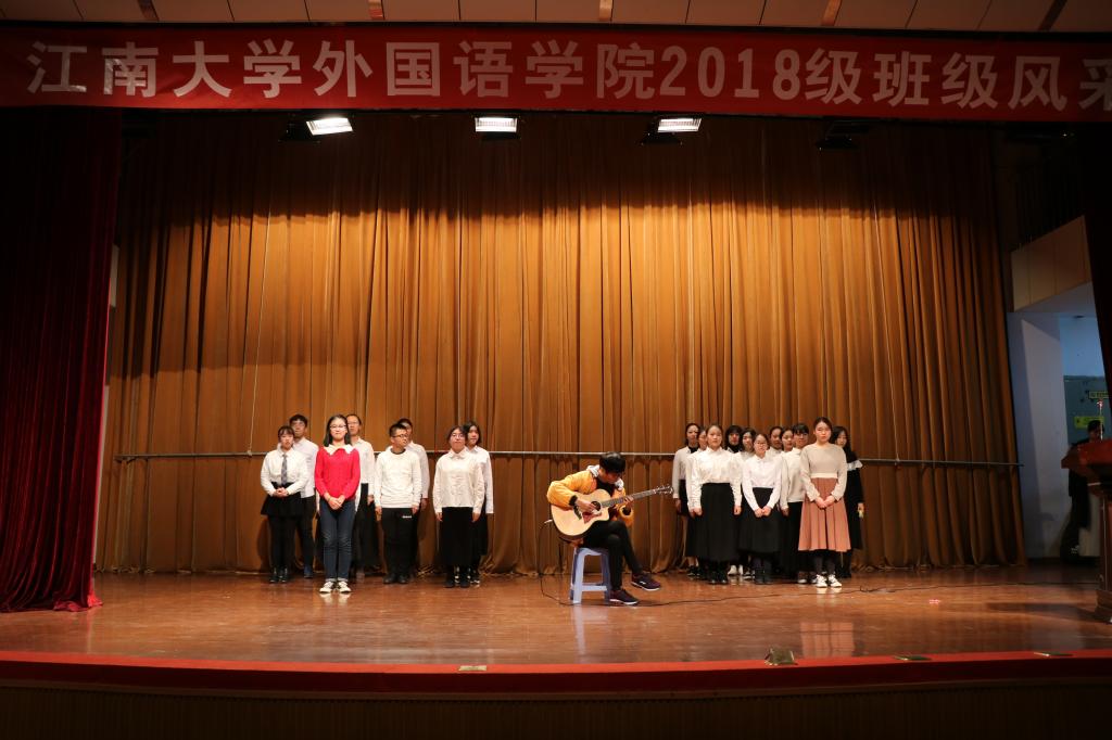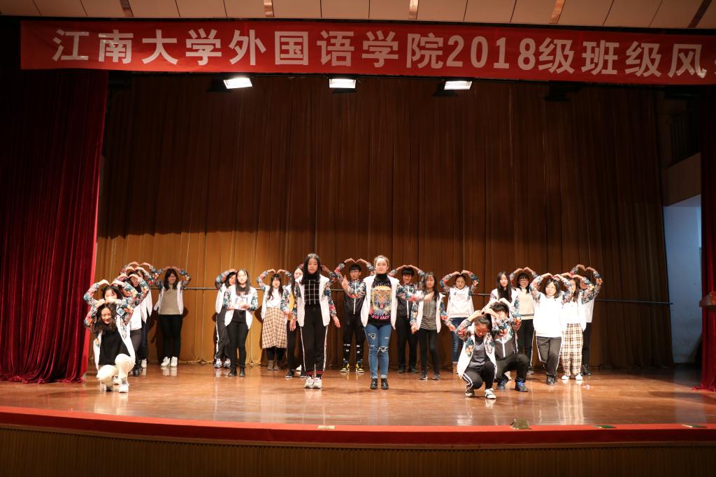 活动共分为班级文化展示和班级才艺展示两个环节。第一个环节,由8个班级代表分别介绍各自的班级文化,如班徽、班训、班级成员精神风貌等。日语1801班的展示主题是《我们不一样》,用别具一格的方式展示了其班级独特的文化建设;英语1801班主题展示为《This us》,其班徽寓意embrace和enjoy,象征着对班集体对大学生活的向往;英语1806班的主题展示为《逐梦》,奇思妙想地展示了其班级对梦想的追逐;英语1805班的主题是《梦想之花,花开江南》,寓意在江南大学放飞梦想;英语1804班级的主题为《无青春,不狂欢》,淋漓尽致地展示了青春活力;英语1801班级展示主题为《文化融合》,惟妙惟肖地介绍了来自五湖四海的班级成员,融聚在了外院这个大家庭;英语1803班级的主题为《英语1803班的小豆芽们》,把班级成员比喻成小豆芽,充满了向上的朝气。此环节不仅体现了外院学子朝气蓬勃的精神风貌,更是寄托了班级同学对大学生活的美好向往。