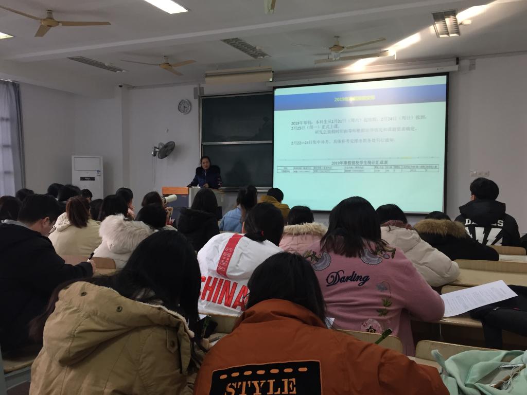 会上,杨艳老师首先就寒假留校期间的注意事项和纪律要求进行了详细的讲解,并要求同学们签署留校安全承诺书。她提醒学生们在假期中注意保护个人财产安全,遵守宿舍管理安排,自觉做好防火、防电、防骗、防盗等安全工作,并叮嘱同学们在外出兼职时要注意安全保护好自己。杨老师还强调了同学们要注意预防流感,在室内多开窗通风,若有身体不适及时就医。