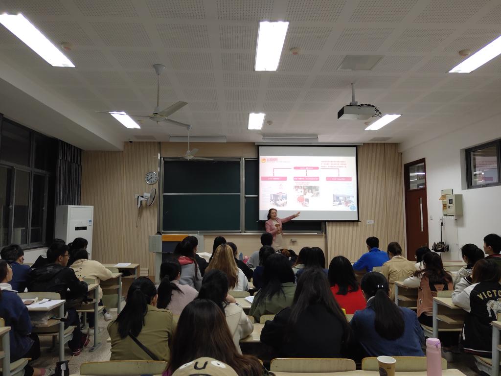 首先,杨老师向全体班团干部汇报了学院2018年度主题教育活动开展情况。回顾了2018年度学院青马工程训练营组织开展情况、“四进四信”、“读懂中国——老少共话改革开放”、“信仰公开课”组织开展情况、典型选树及网上思政引领、基层组织建设、班团一体化建设等方面内容。