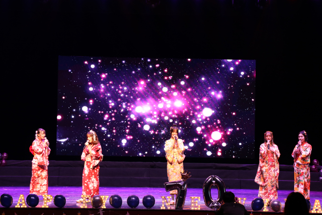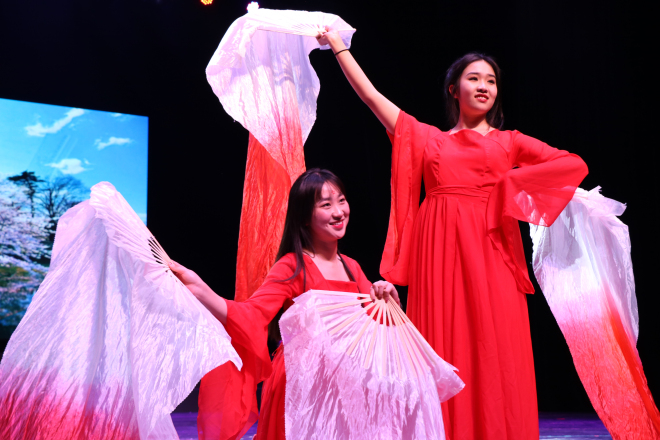 晚会开场由勿氧器乐团带来《董小姐》,气氛热烈,燃爆全场。随后,晚会正式开始,由外院各位老师录制的祝福视频展现了开云手机登录入口温暖大家庭的温馨氛围,同时表达了各位老师对同学们的衷心祝福和殷切的期望。接下来十三个节目依次精彩呈现,古风舞蹈《清平乐》舞步优美,极具中国风的优雅与端庄;小品《我是李焕英》既有风趣幽默,也有温情动人,演员精彩的表演让我们在欢声笑语中体会到真情的价值;八协音乐社带来改变歌曲《八月十五忆吃面兄弟》,年轻富有朝气的歌词和曲风点燃现场气氛;院艺术团带来的舞蹈《ADIOS》青春活力,展现了外院活力向上的学习风貌;由范喆老师和研究生张倩瑶带来钢琴小提琴合奏曲目《Adagio》,为大家呈现了音乐盛宴;英日文歌曲串烧《Oops,樱花》歌曲轻快活泼,展现了外院学子扎实的语言功底;19级带来了情景剧《来自江南的白雪》融合当下幽默喜剧元素,展现了19级新生极佳的创意;激情活力的爵士舞《bang bang》,活力四射,瞬间点燃全场同学的热情;器乐《大鱼海棠》宛转悠扬,中国风浓郁;18级特称团支部带来的红歌《红旗飘飘》为祖国母亲70华诞献礼;19级辅导员携手副班带来舞蹈《遇见青春》,轻快可爱的舞步洋溢着青春气息;钢琴伴舞《樱花》动听美妙,舞姿柔美动人;最后外院学生会为大家带来大合唱《我的秘密》,晚会在热烈的气氛中圆满结束。