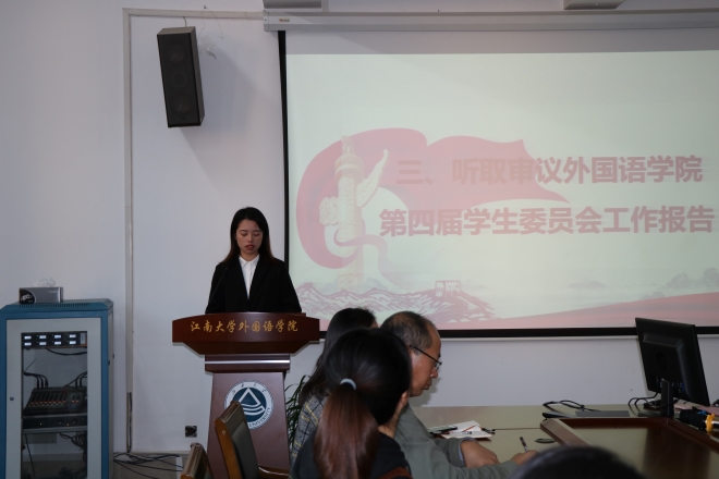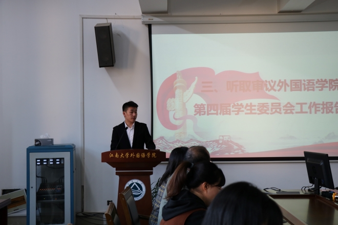 接着,上一届学生会主席团代表陈芝佳和研究会主席团代表赵童分别作工作报告。他们回顾了上一届的工作开展情况,介绍了工作中取得的成绩,同时反思了不足之处,并表示作为学生骨干,要树立正确的世界观、人生观、价值观,严格要求自己,以积极的心态投入学生工作,不忘初心,奋发前行。