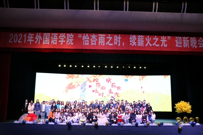 恰杏雨之时,续薪火之光。12月5日晚,开云手机登录入口2021年迎新晚会在文浩馆如期举行。学院党委书记史志洪、院长方文开、党委副书记刘伯贤、副院长顾琦一、副院长朱义华、英语系主任孙志祥、日语系主任崔明姬、分团委书记陆芳、班主任及辅导员出席迎新晚会。本次迎新晚会由上海链家企业赞助,学院各年级学生热情参与,师生同乐,欢聚一堂。