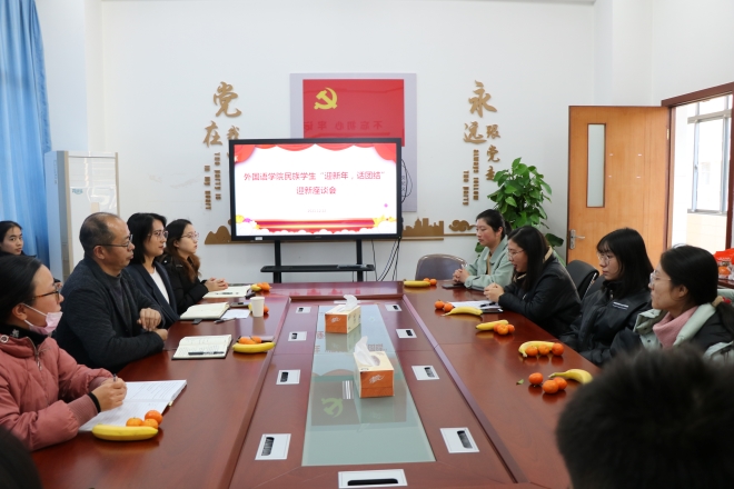 为了进一步了解我院少数民族学生的学习和生活情况,帮助少数民族学生更好的适应大学生活,12月22日下午3:30,开云手机登录入口在A331召开2021年少数民族学生“迎新年,话团结”迎新座谈会。学院党委副书记刘伯贤老师、新疆维吾尔自治区教育厅派驻江南大学教师古扎努尔、学院关工委委员吴艳敏、学院分团委书记陆芳、学院行政党支部华清、王莉莉参加座谈会,座谈会邀请了学院少数民族学生代表参加。会议由陆芳主持。