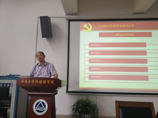 最后,院党委副书记刘伯贤总结讲话。他强调毕业生党员要有坚定的理想信念、要时刻不忘理论学习、要有责任和担当、要有感恩情怀、要继续发挥党员的先锋模范作用。
