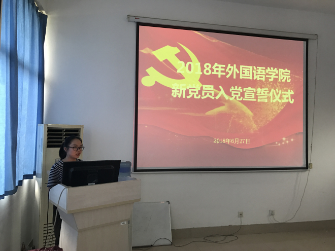 仪式开始,全体起立奏唱《国际歌》。接着,杨艳老师宣读了本次新发展的党员名单,许广玉老师带领全体新党员宣誓。新党员代表方洁同志发言,她表示每位新入党的同志都要实现入党誓词,不断加强对党的基本理论和党的知识的学习,不断加强党性修养,不断自我学习、自我提高、自我完善,永远保持党员先进性,提高业务水平和技能,以优异的成绩向党和社会汇报,做合格的中国共产党党员。