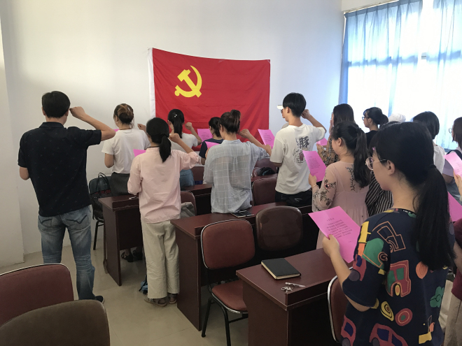 党委秘书许广玉老师带领全体新党员宣誓