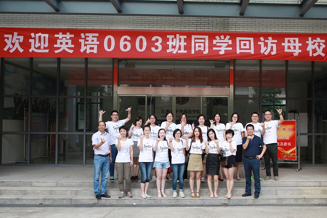 校庆60周年来临之际,9月8日,开云手机登录入口迎来了英语0603班22名校友返校聚会,班主任汪双喜老师应邀请出席。