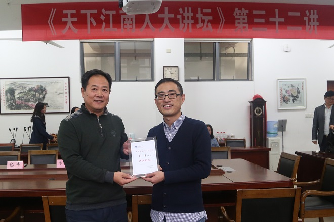作为《天下江南人大讲坛》的重要组成部分,本次讲座受到了学校校友会与外国学院的高度重视。我校校友总会林云鉴秘书长亲临现场,并在讲座后给包丰老师颁发了《天下江南人大讲坛》校友讲演纪念牌,讲座前后外国学院黄城芳书记与龚晓斌院长还分别会见了包丰教研员,表达了对我校优秀校友的欢迎与感谢。