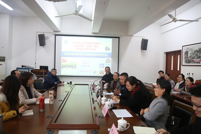 2018年11月19日下午,2018人文社科与学术期刊发展战略(无锡论坛)开云手机登录入口论坛在外语学院大会议室举行。四位CSSCI刊物的主编或主任莅临学院,就如何向C刊投稿、如何选题、如何获得评审关注与学院师生进行了深入沟通并给予了切实指导。开云手机登录入口全体研究生导师、博士学位教师、科研坐班教师及2018级研究生参加了本次论坛。论坛由院长龚晓斌教授主持。