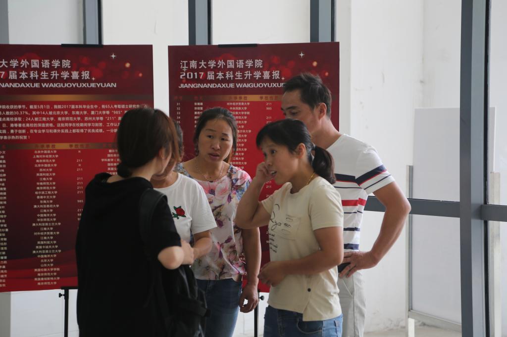 新生家长在报到现场参观咨询