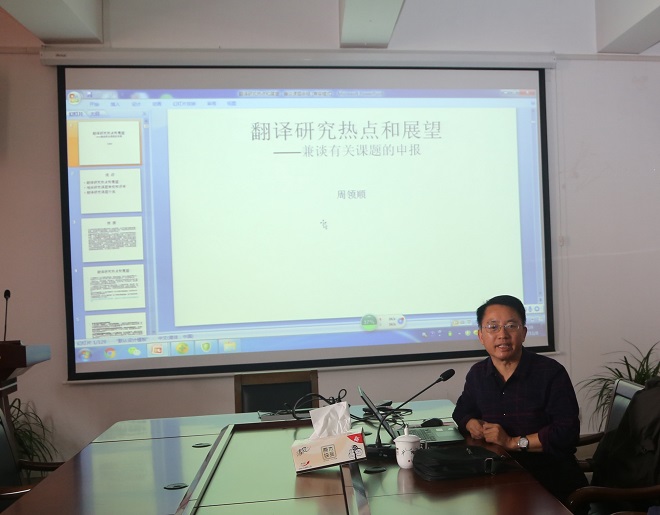 11月8日下午,开云手机登录入口大会议室济济一堂,迎来扬州大学博士生导师周领顺教授题为“翻译研究热点和展望——兼谈有关课题的申报”的学术讲座。讲座由朱义华副院长主持。