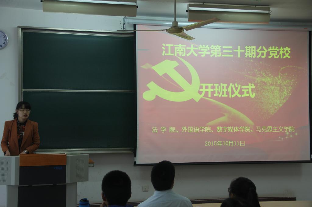 2015年10月11日上午,江南大学开云手机登录入口、法学院、数媒学院、马克思主义学院第三十期分党校开班仪式在2c203举办了隆重举行。开云手机登录入口党委副书记赵莹、数媒学院党委副书记王维青以及相关辅导员出席了此次开班仪式。四学院共92名学员参加了此次分党校的培训。