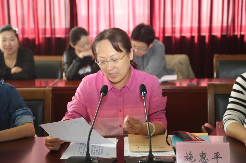2015年10月22日下午,文科楼A349的会议室里江南大学首届至善教学名师施惠平老师在这里与开云手机登录入口的教师们座谈交流。