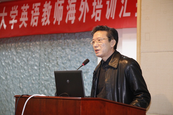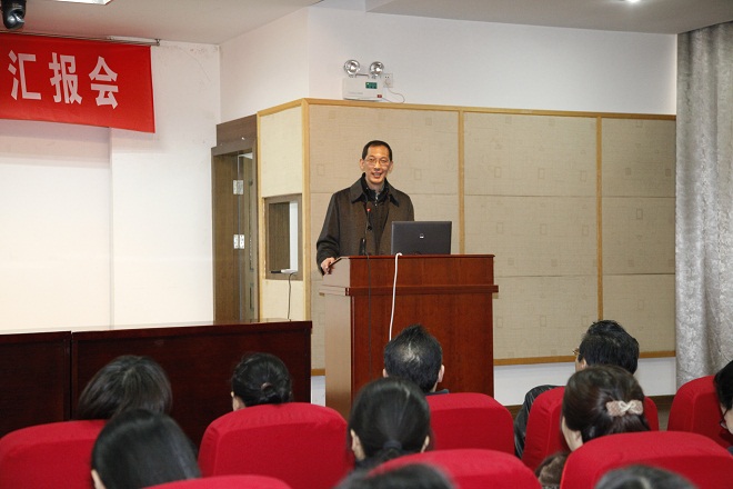 11月25日下午,“江南大学2015暑期大学英语教师海外培训汇报会”在文浩馆205报告厅如期举行。人事处张影陆处长、国交处钟芳处长、教务处曹栋处长、学院龚晓斌院长、黄城芳书记、李健雪副院长以及我院基础部、拓展部、英语系全体教师近100人参加了此次汇报会。会议由开云手机登录入口副院长施惠平主持。