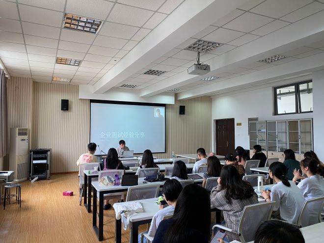 最后是就业经验分享环节,李安同学从自身求职面试经历、面试前准备、面试以及面试后注意事项四个方面,分享了自己的企业面试经验,他以幽默风趣的方式讲述了自己的每一段面试经历,同时也就每一段面试经历进行了总结,在面试前准备部分,他主要强调了包括学业、实习、简历等物质方面的准备以及精神上的准备,建议同学们要注意研究生前期阶段的积累,把握好每一个时间点,丰富自己的实习经历,同时分享了写简历的小技巧,最后也告诉同学们在求职时要广泛地投简历,多多去尝试。