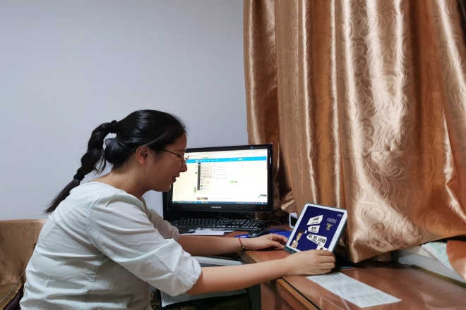学院2022届研究生辅导员陆芳老师在学习