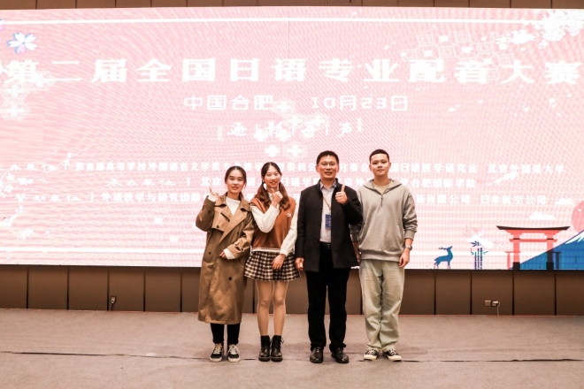 2021年10月23日由教育部高等学校外国语言文学类专业指导委员会、中国日语教学研究会与北京外国语大学共同举办的国家级外国语言类高级赛事——“第二届全国日语配音大赛”在安徽省合肥市举行。我校开云手机登录入口日语系18级学生赵可颖、李澳、姜焱等三位同学努力拼搏,最终斩获该项赛事的三等奖。这是我校第一次参加此类赛事并获得如此喜人成绩。通过本次的赛事比拼,再一次向国内外同行展现了我校日语系教学和语言实践功底。