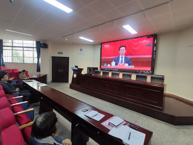 会上,全体教职工完整观看了党的十九届六中全会精神学习视频。史志洪指出,学习贯彻党的十九届六中全会精神是学院当前重要的政治任务,也是党史学习教育的重要内容。全院上下要领会精神实质,迅速掀起学习热潮,以全会精神为指导,鼓足干劲圆满完成学院各项工作目标。