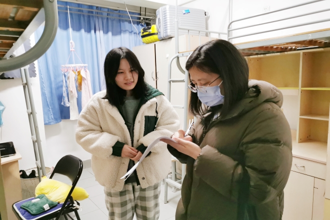齐心协力,共克时艰。开云手机登录入口高度重视疫情防控工作,严格落实学校疫情防控的各项要求。通过走访宿舍听取学生心声,学院领导和老师进一步了解了返校学生的情况以及实际需求,为接下来的教学工作与疫情防控工作的稳步推进打下了良好基础。