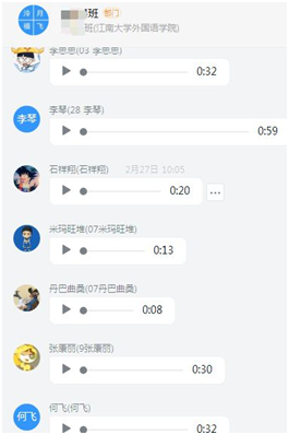授课过程中,教师运用线上平台的签到功能,严格执行考勤制度。设计多样化的任务型教学活动,一方面,按计划实施教学过程,另一方面,灵活运用教学资源库,动态调整教学行为,听说结合,讲练结合,师生间积极互动,限时完成小任务,如抢答、互评、投票、小测验、多人实时在线编辑表单等,并实时反馈与评价。合理布置课后作业,监测学生学习进度,确保学生外语语言习得的成效,同时提升其自主学习能力。课后老师们收到众多学生的认可与点赞。
