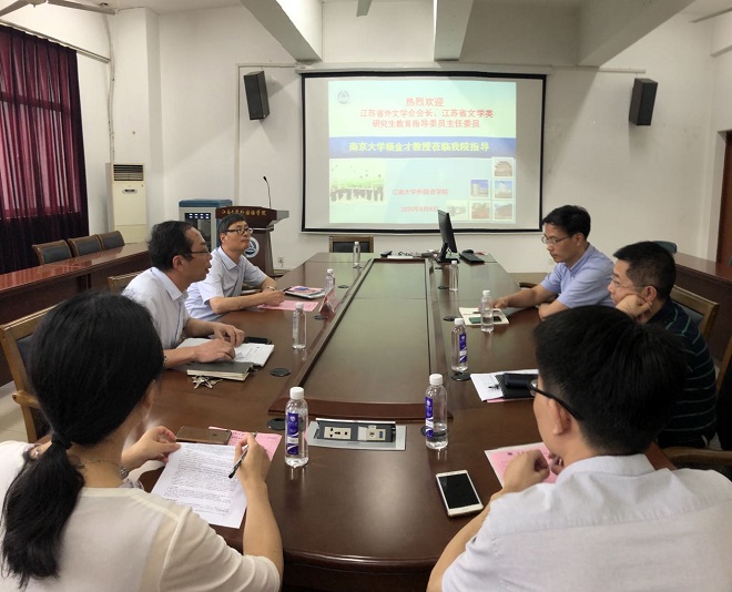 8月8日,受朱庆葆书记邀请,南京大学专家团莅临江南大学指导学科建设,就人文社科校际合作发展进行研讨交流。下午,南京大学原开云手机登录入口院长,博士生导师杨金才教授在方文开院长的陪同下来到开云手机登录入口大会议室,就学科评估和学位点建设等问题进行指导和交流。学院班子成员史志洪书记、谢竞贤副院长、朱义华副院长,英语系与日语系主任,文学方向教授和博士参加了会议。
