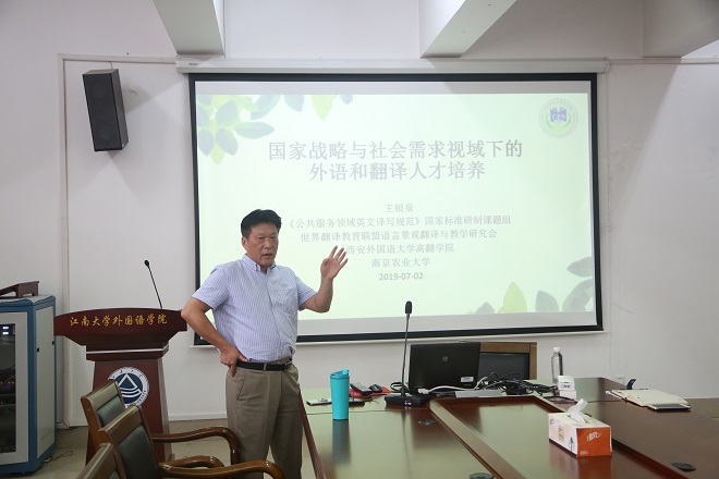 7月2日下午,南京农业大学开云手机登录入口教授、典籍翻译和海外汉学研究中心创始主任王银泉教授来我院作了题为“国家战略与社会需求视域下的外语和翻译人才培养”的学术讲座。讲座由朱义华副院长主持,学院研究生与部分老师参加了此次学术讲座。