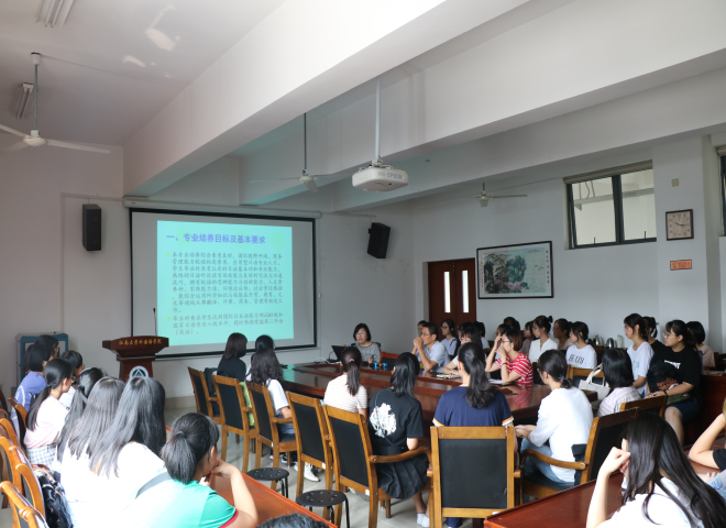之后进行的是专业教育。在专业教育会上,学院英语、日语系主任主要剖析专业历史沿革与优势,从专业的发展方向上为同学们做了详细介绍。在结合学院人才培养模式以及毕业学生就业情况,为新生的专业学习提出几点要求和希望。专业教育会使得同学们对所学专业有了更加深入的了解,让大家进一步明确学习目标,做好学业规划。