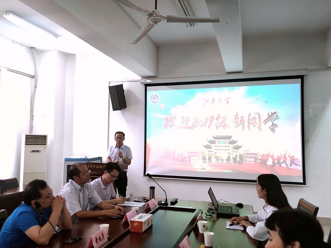最后,副院长朱义华开展了研究生入学教育活动。朱院长从学校背景、学院概况、学科历史、师资队伍、科研实力、研究条件、课外活动等诸多方面介绍了学校、学院与学科的情况,进而从培养计划、学习进程、学术道德、规章制度、就业升学、建议提醒等方面对研究生学习、科研与生活的各个方面进行了讲解,帮助同学们树立良好的学术道德与研究习惯,明确自己的奋斗目标与生涯规划,快速实现从本科阶段知识性学习模式到研究生期间探索性学习模式的完美转型。
