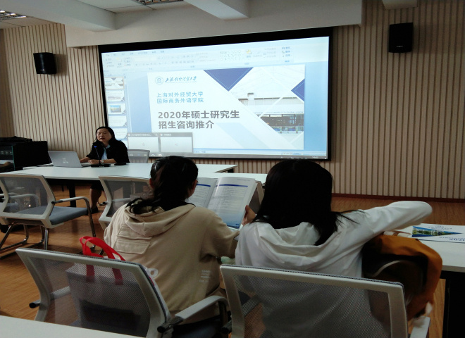 精讲会伊始,黄老师就考研各个时间点、报考流程、报考方向及报考细节等重要要求逐一进行了说明;并指出同学们应密切关注目标院校招生简章,认真了解报考方向的专业科目及报考要求。同时,她也对网报系统中可能出现的问题和报考点的选择及注意事项引用了实例来详细讲解。接着,黄老师主要围绕政治科目给出冲刺备考的三条建议:1.通学知识点,区分重要度;2.涉猎真题,学答题套路;3.整理笔记,提炼框架模板。此外,她表明,考研期间个人的精力管理和心态的建设是考试的重要保障,考研学子要注意自己的身心训练,有规律地安排好作息时间。最后,黄老师还对初试成绩公布后的各种可能:如何参加复试面试、选择调剂学校等方面给出了详细的建议。期间,上海对外经贸大学国际商务外语学院的金镜玉教授就2020年研究生招生工作也开展了咨询推介活动。
