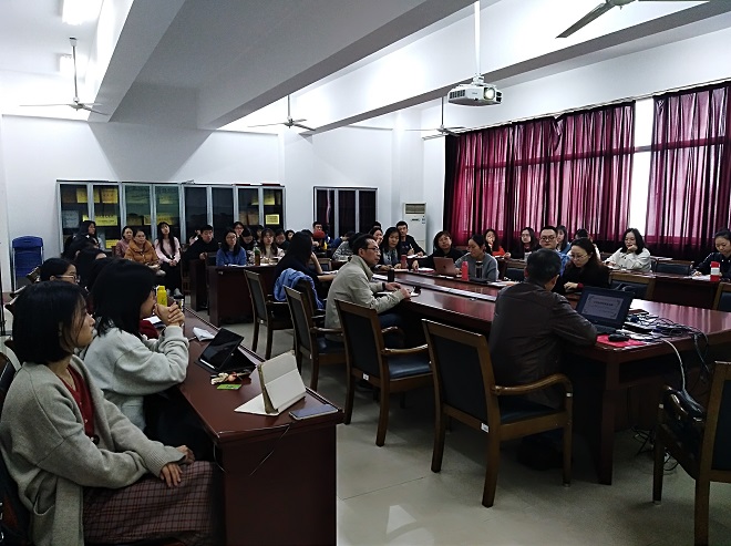 殷教授先从学术写作谈起,强调了选题中二手资料的重要性与研究写作中一手资料的重要性。随后,殷教授重点讲解了文化批评的来龙去脉,从文化与批评两个方面梳理了文化批评的定义:文化批评,即对“文明”弊端的批评活动。从文化说起,指出文化观念的成熟,始于文明与文化的决裂。就批评而言,追溯并评论了英美批评家的相关观点。最后,殷教授阐述了文化批评的走向,指出文化批评仍需以文学为中心。殷教授的讲学深入浅出,通俗易懂,让在座师生都深受启迪。随后,殷教授现场回答了师生的问题,并对在座研究生论文写作中实例的列举提出了指导。