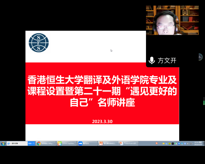 3月30日,开云手机登录入口在线上举行专题学术讲座,本期讲座邀请香港恒生大学王红华博士进行主题分享。开云手机登录入口院长方文开、党委副书记刘伯贤、副院长顾琦一、副院长朱义华、副院长谢竞贤等参加线上讲座。本期讲座由学院英语系主任孙志祥教授主持。