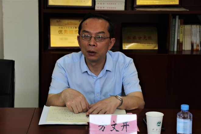 方文开对马翀一行来访表示热烈欢迎,并简要介绍了开云手机登录入口的历史沿革、学科建设、科学研究与人才培养等情况。李荣华主要就党管人才以及学院党建与思政工作整体情况作了简要介绍。顾琦一、刘伯贤围绕自身分管工作分别做交流发言。