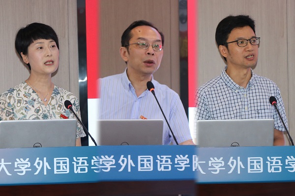 学生代表发言环节,在校生代表丁丁以自己丰富的经验为依托,向同学们传授了学习经验,并鼓励同学保持此刻年轻头脑里的疑问与思考,带着热爱砥砺前行。本科新生代表李梓潼表达了加入江大外院的欣喜与激动,与同学们一道回望了寒窗苦读十余年的难忘经历,也表达了对未来大学生活的向往与不负韶华时光的坚定决心。研究生新生代表杨可带着历尽千帆之后的坦然,向大家讲述了备战考研到成为江大外学研究生之一的学习历程。她以“追风赶月莫停留,平芜尽处是春山”一句结尾,与诸位同学共勉。