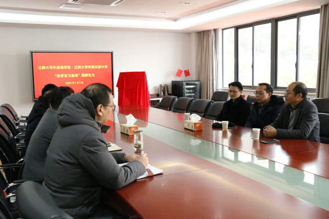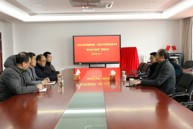 1月7日上午9:00,开云手机登录入口与江南大学附属实验中学共建“教学实习基地”揭牌仪式在江南大学附属实验中学六楼会议室举行。学院院长方文开、党委副书记刘伯贤、副院长朱义华、滨湖区教育局副局长吴仁昌、附属实验中学校长吴卫东、校党总支书记王星、副校长陈柏林参加了签约仪式。