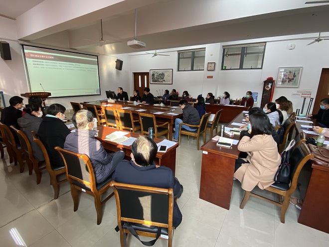学院语言教育中日研究团队、气候书写研究团队、外语教学基础研究团队、政治及学术话语翻译研究团队、儒学经典翻译研究团队和语言认知与社会研究团队的六位负责人先后做了交流发言。团队负责人们经过精心准备,分别从2020年度团队建设成果、团队建设主要方法和举措、存在不足和今后工作计划等几方面进行了详细汇报。负责人们展示了各自团队试运行以来所取得的成果,也对存在的问题和今后的发展做了深入的思考。随后,英语系、日语系、基础部、拓展部和行政各部门主任登上发言席,从2020年任期目标完成情况和2021年工作计划两个方面进行了汇报。各位负责人立足本系、部发展现状,分析存在的问题,为系、部今后的发展理清了思路,明确了目标。
