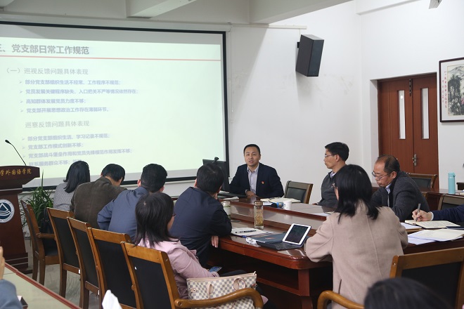 会上,史书记对校巡察组反馈的九个有关基层党建的问题进行了通报。他强调,针对这些问题,各支部应认真对照,落实整改,确保支部工作标准化、规范化。史书记还对我院近期党建工作任务进行了梳理和部署,希望支部书记们带领支委委员群策群力,学用结合,切实发挥党支部的战斗堡垒作用,为学院建设添砖加瓦!