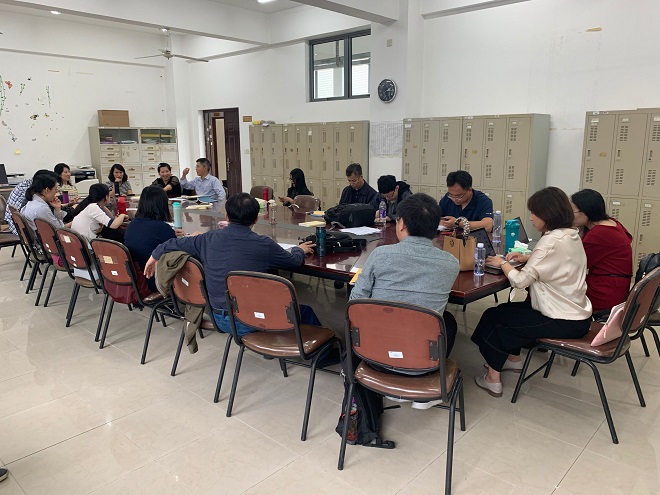 随后孙老师邀请王金安教授就其课题组立项的江苏省高教学会课程思政课题,与英语系全体教师进行了分享交流。王金安老师详细介绍了《商务英语课程思政建设》课题的意义、思政的切入点和具体的教学策略,特别是就如何重构教学材料,重构教学目的,发掘商务思政元素,凝练思政主题,引导学生思政创新和共建师生评估平台等方面进行了深入探讨。教师们都受益匪浅。