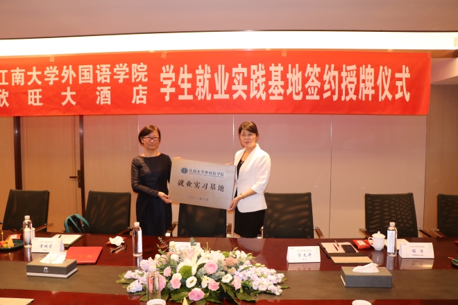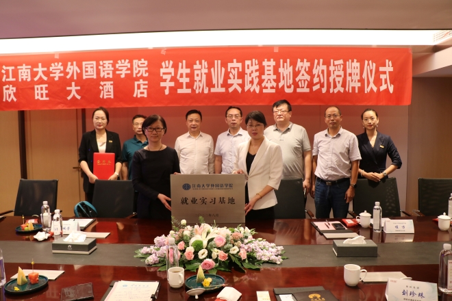9月15日下午,江南大学开云手机登录入口与欣旺集团共建学生就业实践基地签约授牌仪式在欣旺大酒店举行。开云手机登录入口院长方文开、学院调研员黄城芳、学院党委副书记刘伯贤、学院副院长顾琦一、外语培训中心主任程方,欣旺集团董事长唐国忠、酒店总经理刘珍珠、酒店人力资源副总监张涛涛、董事长秘书吴洁等共同出席了签约授牌仪式。