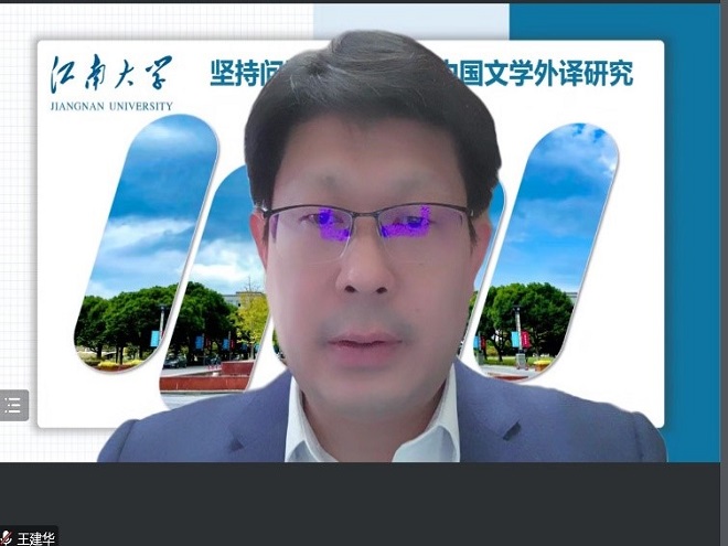 在中国文化“走出去”的战略背景和时代语境下,中国文学外译是讲好中国故事、传播好中国声音不可或缺的路径。为激发师生文学外译研究兴趣,指明文学外译研究方向,提升文学外译质量,江南大学开云手机登录入口特别邀请南京大学翻译研究所所长刘云虹教授于2022年12月22日作了题为“坚持问题导向,深化中国文学外译研究”的学术讲座。本次讲座采取线上腾讯会议方式进行,江南大学社科处处长王建华教授出席了本次学术交流,学院教师及研究生百余人共同聆听了讲座。