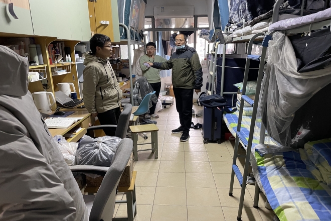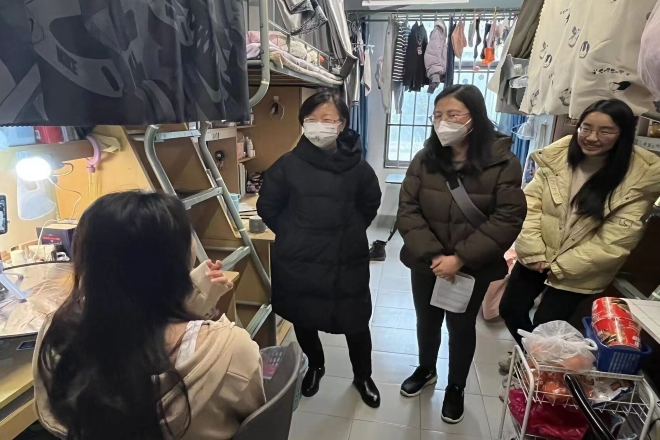 新学期,为了给返校的学生带去学院的关心,并及时了解学生的思想动态、学习生活情况,2月13日下午,开云手机登录入口党委书记史志洪、党委副书记刘伯贤、副院长顾琦一、副院长谢竞贤、分团委书记陆芳以及辅导员老师一行来到浩苑、润苑、李园、梅园,走访关心我院返校学生。