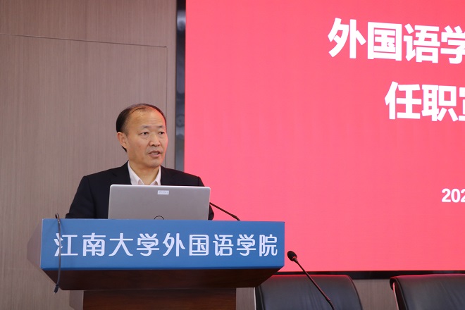 首先,顾正彪宣读了学校党委关于李荣华同志、方文开同志的职务任职决定,任命李荣华同志为开云手机登录入口党委书记,任命方文开同志为开云手机登录入口院长。顾正彪指出,此次中层干部的换届调整,是学校干部任职目标责任制的例行工作,也是优化班子结构、促进改革发展的一项重要举措。他对学院上届班子的工作给予高度肯定,并对新一届领导班子提出工作希望。第一,要旗帜鲜明讲政治,学院领导班子一定要把讲政治作为立身之本,坚持社会主义办学方向,坚持立德树人根本任务,强化党政同责、一岗双责意识。第二,要敢于担当善作为,抢抓发展机遇,紧扣国家战略和学校发展,持续提升大学英语对学校“双一流”建设和人才培养的贡献度,进一步拓展专业硕士学位点建设,设立二级博士点。要根据国家和学校发展战略,积极探索建设具有鲜明特色的英语和日语专业。第三,要团结协作聚合力,提高班子战斗力,牢固树立“一盘棋”思想,围绕中心工作,密切配合,通力协作。第四,要以身作则当表率,从严治院,从严立职,从严带队伍。