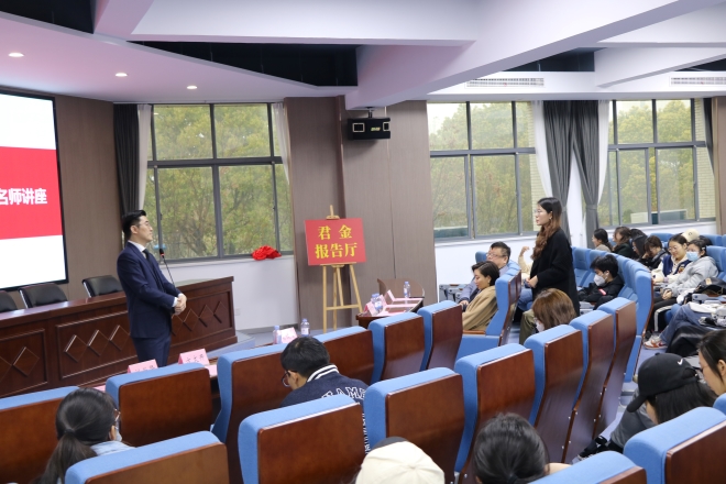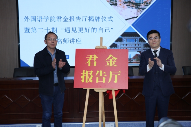 3月22日13:30,开云手机登录入口举行君金报告厅揭牌仪式暨第二十期“遇见更好的自己”名师讲座活动。江苏君金律师事务所创始人葛俊君、鑫展集团董事长张晓秋、学院院长方文开、学院社会服务部主任程方以及学院155名学生参加了本次活动。活动由学院党委副书记、副院长刘伯贤主持。