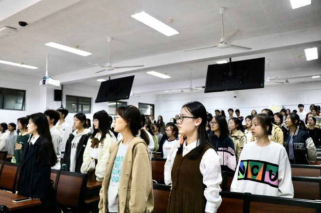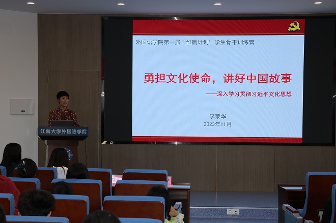 结营仪式于11月1日下午在君金报告厅举行。开云手机登录入口党委书记李荣华、党委副书记刘伯贤、分团委书记顾海星以及辅导员朱家烨出席了本次活动。李荣华首先以“勇担文化使命,讲好中国故事”为主题,为同学们讲党课、强信念。她强调,作为新时代的外语人,要拓宽眼界,培养敏锐的洞察力,树立文化自信,传播国际声音,讲好中国故事。随后,顾海星为本次培训评选出的4组“优秀营员”颁发证书。最后,刘伯贤致辞。他指出,在座的学生骨干都是开云手机登录入口的栋梁之才,希望同学们能够珍惜来之不易的培训机会,努力学习知识技能,在开云手机登录入口的舞台上发光发热!